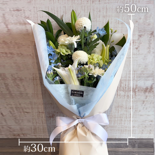 サイズ : 花束 高さ約50×幅約30cm、アレンジメント 高さ約30×幅約25cm
