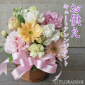 お供えアレンジメント お供え花 かわいいお供え 母の日参り 敬老の日 花 パステルカラー 花 白いカーネーション 法要 花 仏花 アレンジメント 癒し ギフト 花 ギフト 女性 リボン付き 花束 届いてすぐ飾れる バラなし アレンジ フラワーギフト