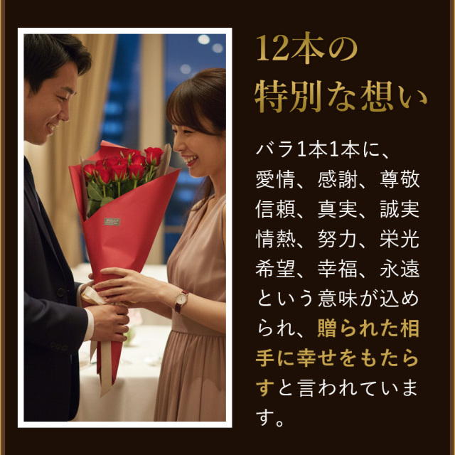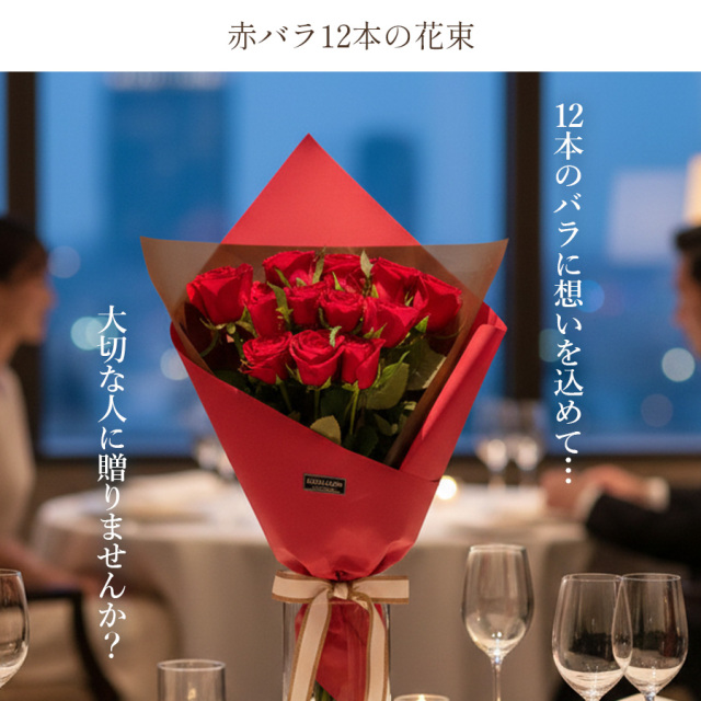 赤バラを12本を使い豪華でエレガントに仕上げております。