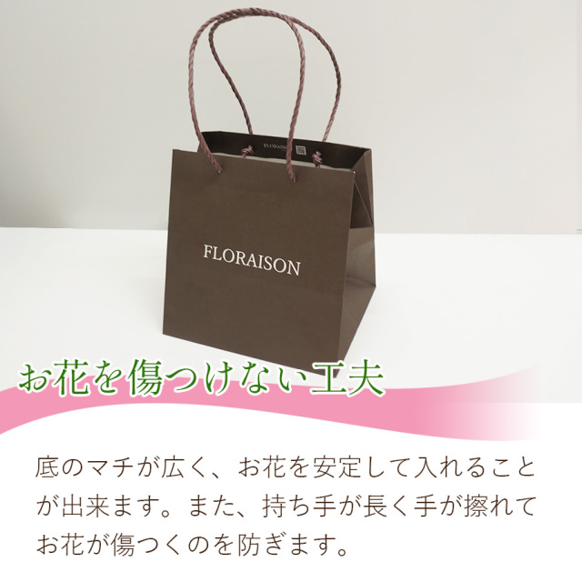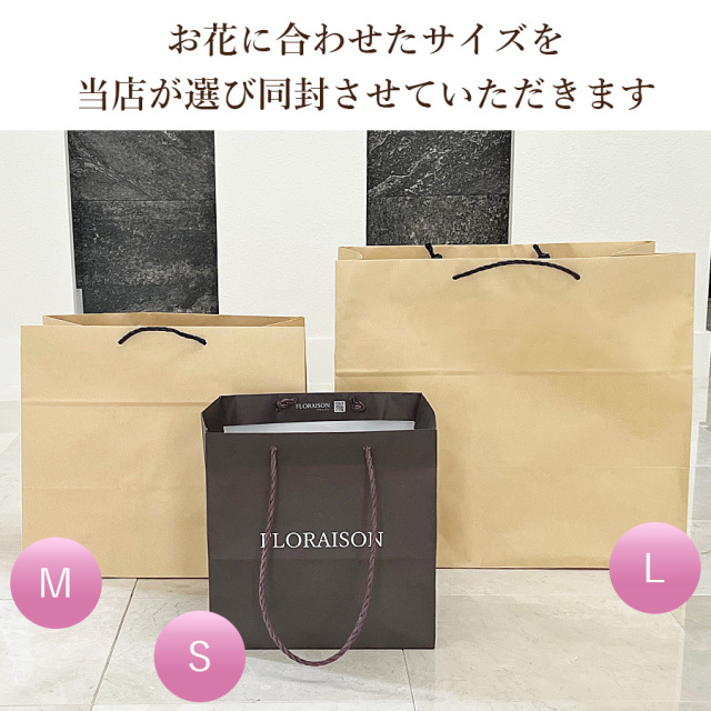 S〜Mサイズやロングブーケまで、スタッフがご注文内容に応じて適正なサイズの袋を選定いたします。