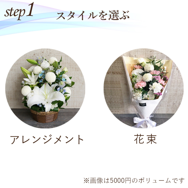 スタイル、色がオーダーメイドで選べるお供え花です。