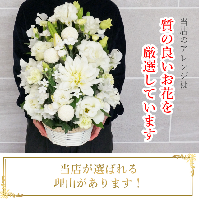 お供え花の定番スタイルです。届いてすぐに飾ることができます。