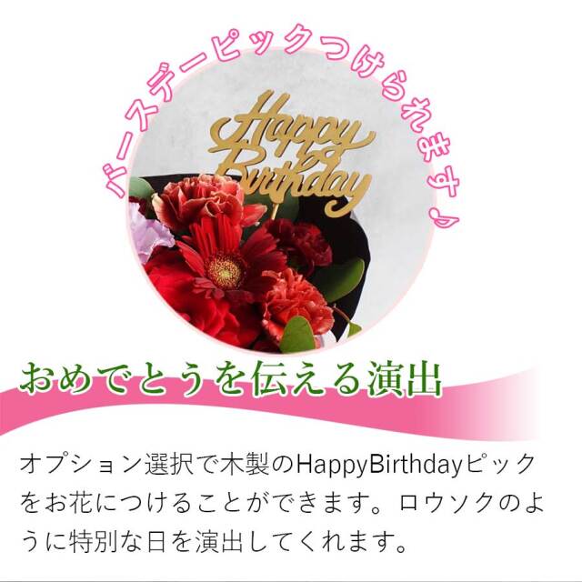 お客様の誕生日プレゼントに使わせて頂きました。直接先様に送って頂いたので、こちらには画像も送って頂いて見れるのも良いところです。何度かリピートさせて頂いていますがとても良いお店だと思います。またよろしくお願いします。