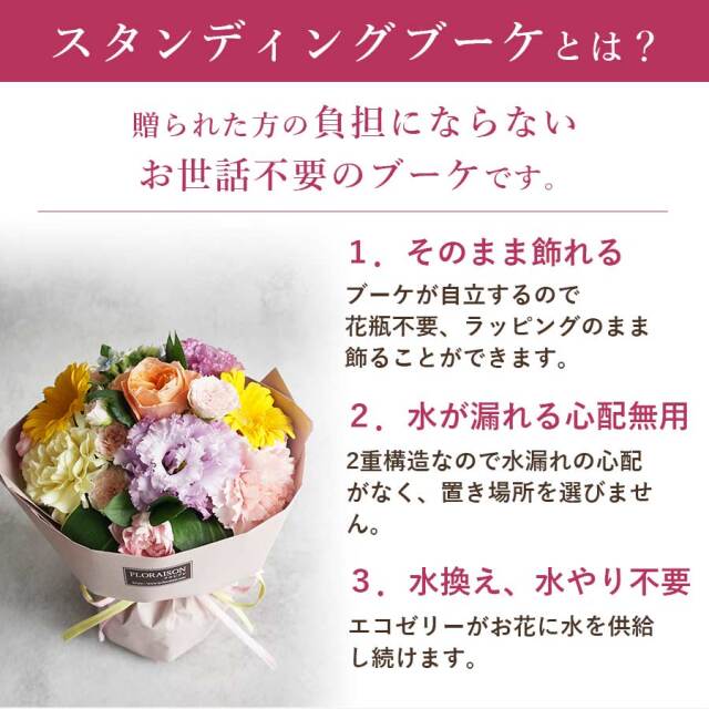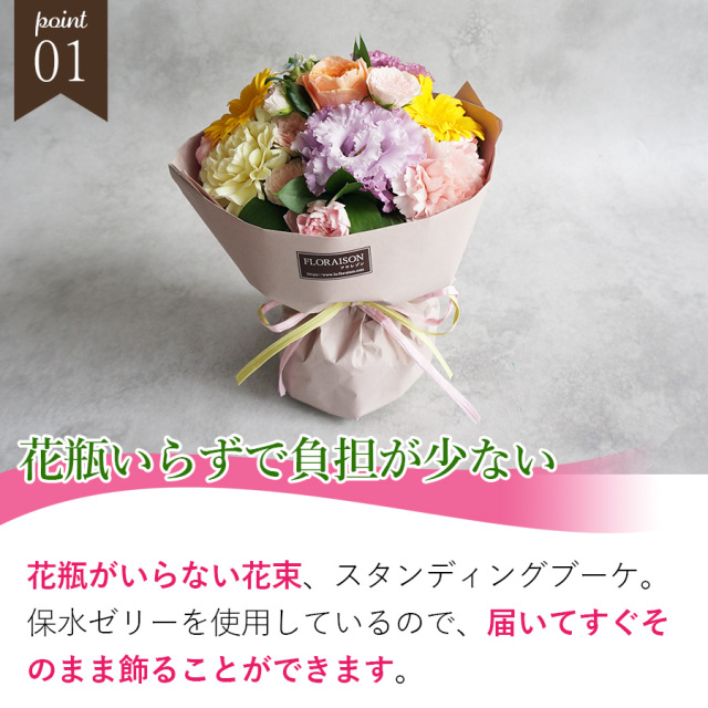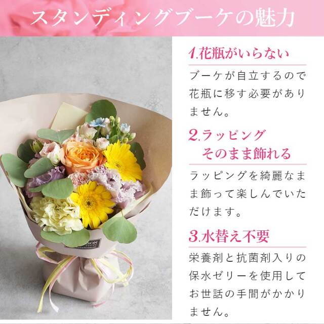 そのまま飾れるスタンディングブーケです。