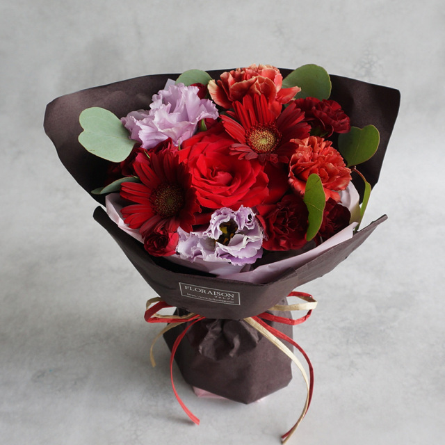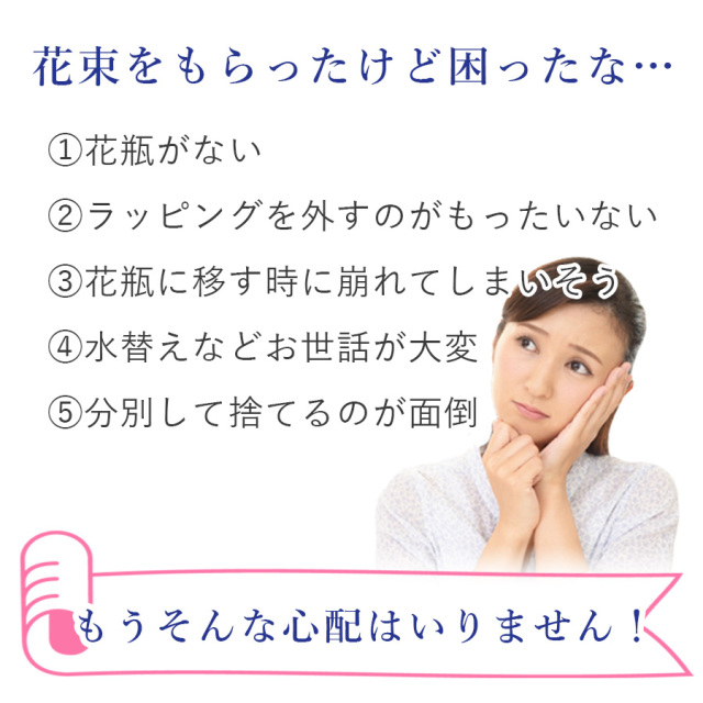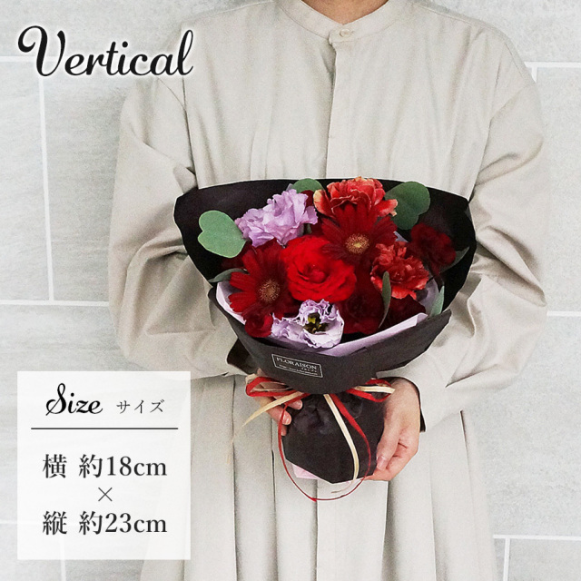 花瓶の水替えなど心配せず遠方の家族に花を贈れるのは、より相手に負担をかけずに済み贈る側も気楽ですし、受け取った側も喜んでくれました。お花が可愛らしいことも事前に写真で確認でき、言うことなしでした。シックな赤系統、よかったです。