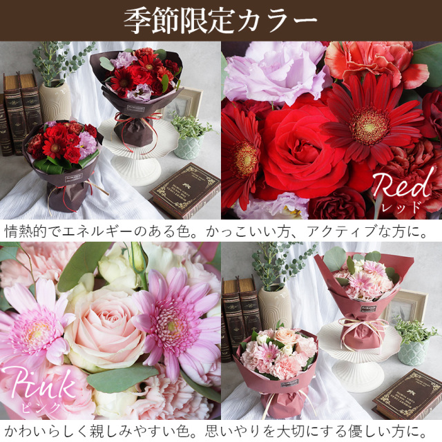 時期によって入荷する、その時、その季節に一番キレイなお花をお楽しみください。