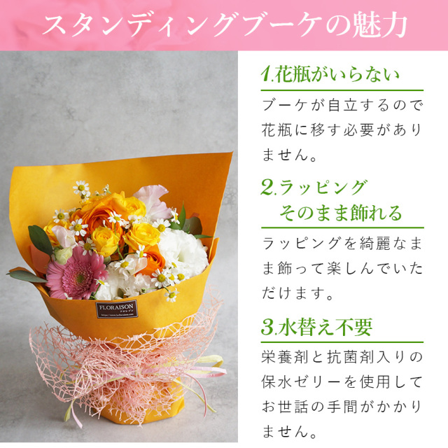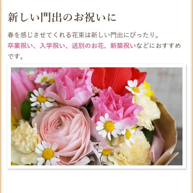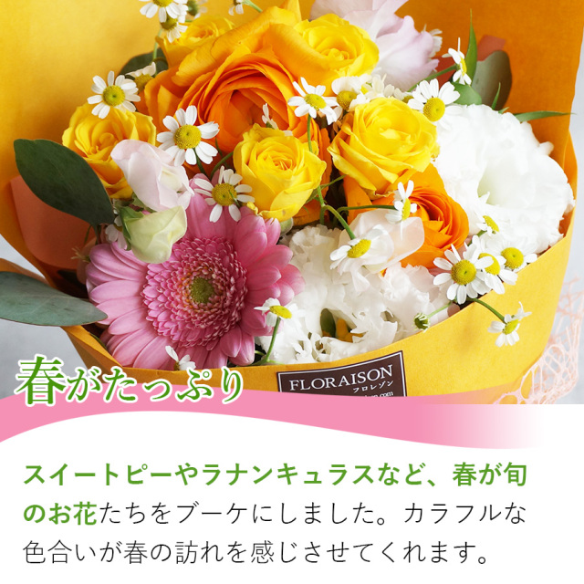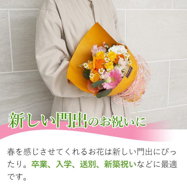 卒業祝い、入学祝い、春の誕生日プレゼント、送別の花などにおすすめです。