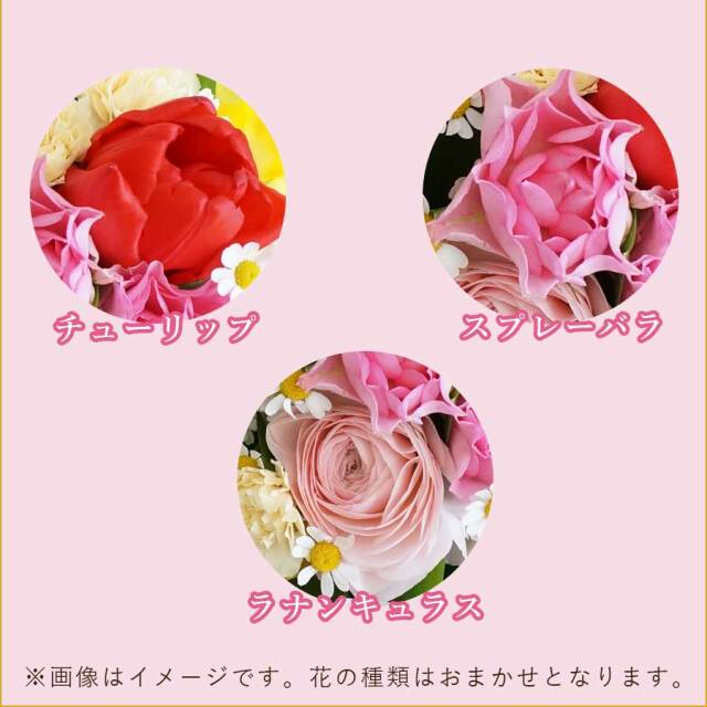 ※画像、花材は一例です。ご注文のタイミングによりお花の種類は異なります。御要望がある場合はご注文時に記載いただくか事前にお問合せ下さい。