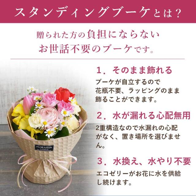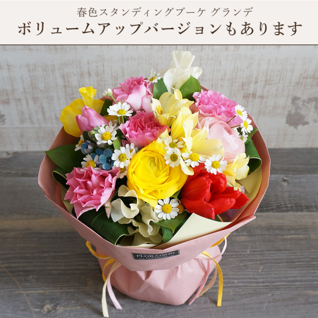 春限定色のそのまま飾れるスタンディングブーケです。
