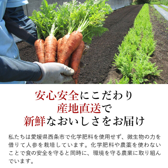 2年以上農薬を使用していない圃場で、農薬や化学肥料を使用せずに栽培したにんじんです。