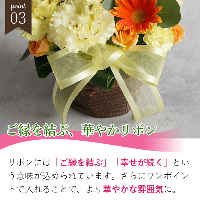 カゴに入ったアレンジメントタイプなので受け取ったらのそのまま飾ることができます。
