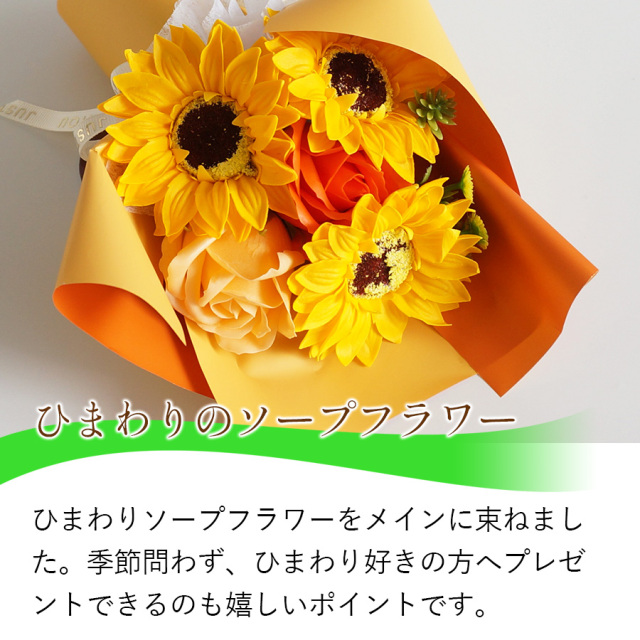 ソープフラワー ひまわり 石けんの花 石鹸の花 香り付き ソープフラワーギフト 枯れない花 石けん素材 花びら 石けん素材 ブーケ 花束 スタンディングブーケ 花瓶不要 飾れる花 フラワーギフト インテリアフラワー プレゼント 誕生日ギフト 母の日ギフト 敬老の日ギフト お祝い おしゃれな花 長持ち アレンジメント サンフラワー ギフト 人気 石けんの香り リビング装飾 ディスプレイフラワー フレグランスフラワー 香る花 観賞用 花のギフト ひまわりブーケ 夏の花 プレゼント向き 枯れないブーケ 花インテリア ソープフラワー ひまわりブーケ ギフトセット