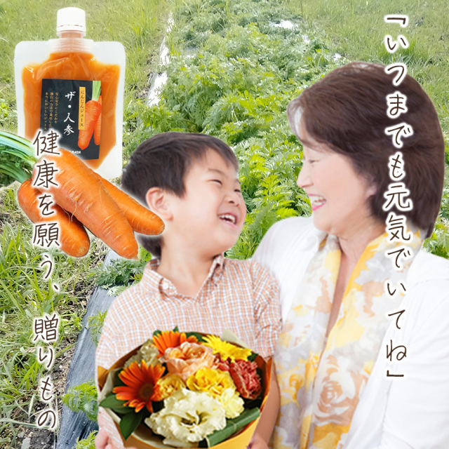お花を見て癒され、人参ジュースで身体も癒される時間を大切な人・お世話になっている人にプレゼントしましょう。