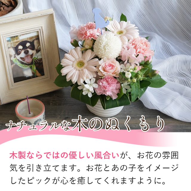 木製ならではの優しい風合いが、花の雰囲気を引き立てます。