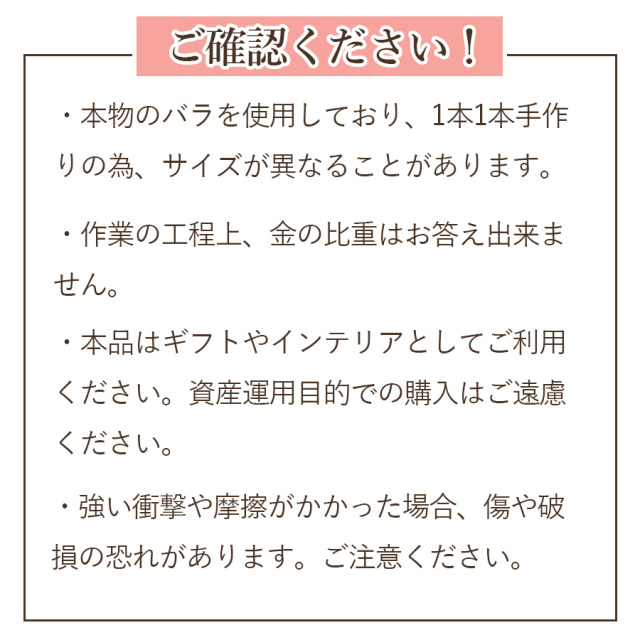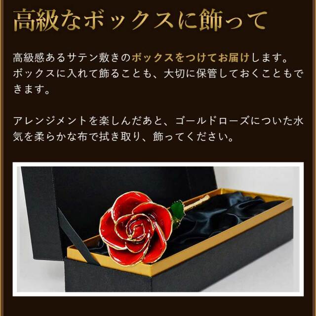 ※アレンジメントからゴールドローズを抜き取った後は、必ず水分を拭き取り保管してください。