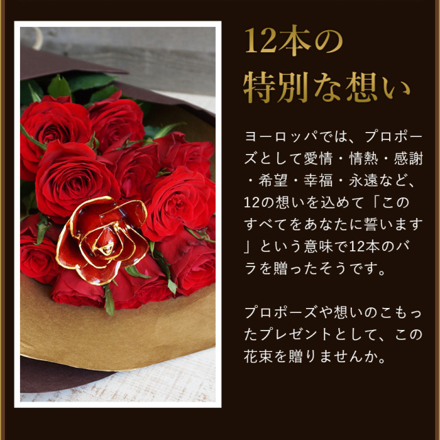 赤バラを12本を使い豪華でエレガントに仕上げております。
