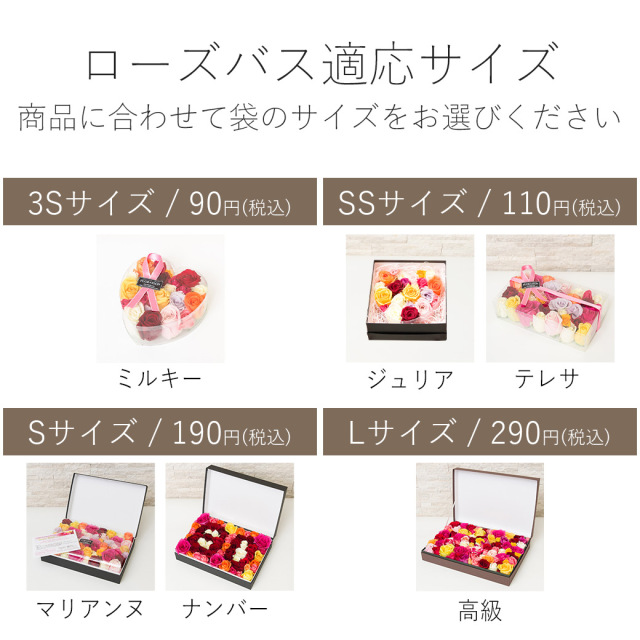 ローズバスががちょうど入る4種類のサイズを取り揃えています。