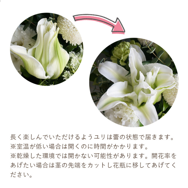 生花商品は高温・低温期当店判断にてクール便発送することがあります。ご了承願います。
